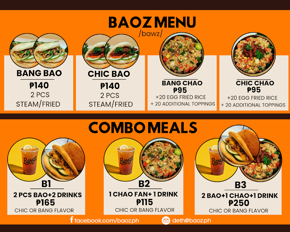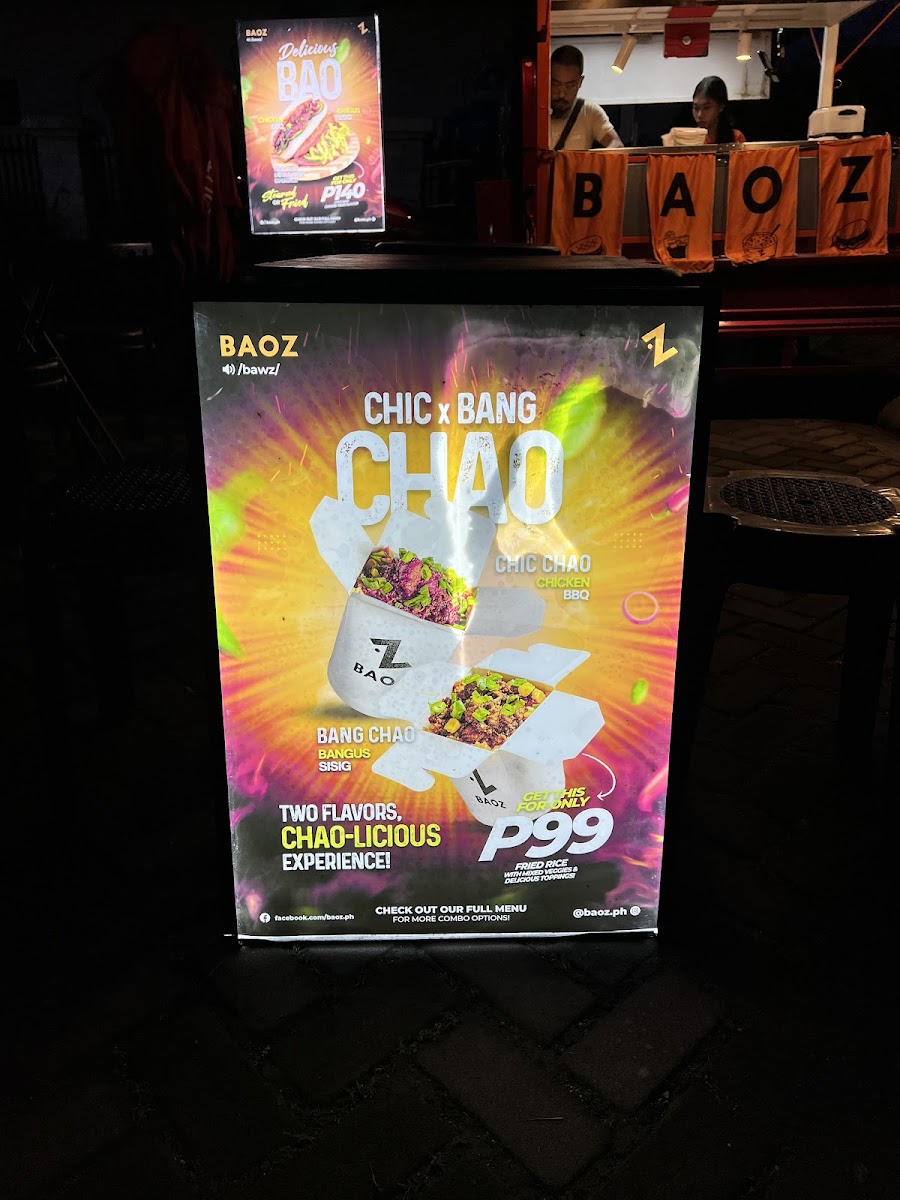 Baoz at Night Food Park in Tagbilaran City offers a vibrant take on Taiwanese street food with a unique Filipino twist. Their menu shines with comforting, flavorful dishes like the Lechon Chao Fried Rice, where tender lechon meets fragrant chao sauce, mixed veggies, and spring onions, creating a perfect harmony of taste and texture. The Fried Lechon Bao stands out—crispy buns filled with savory lechon and drizzled with rich lechon sauce, delivering a satisfying crunch followed by tender, juicy filling.